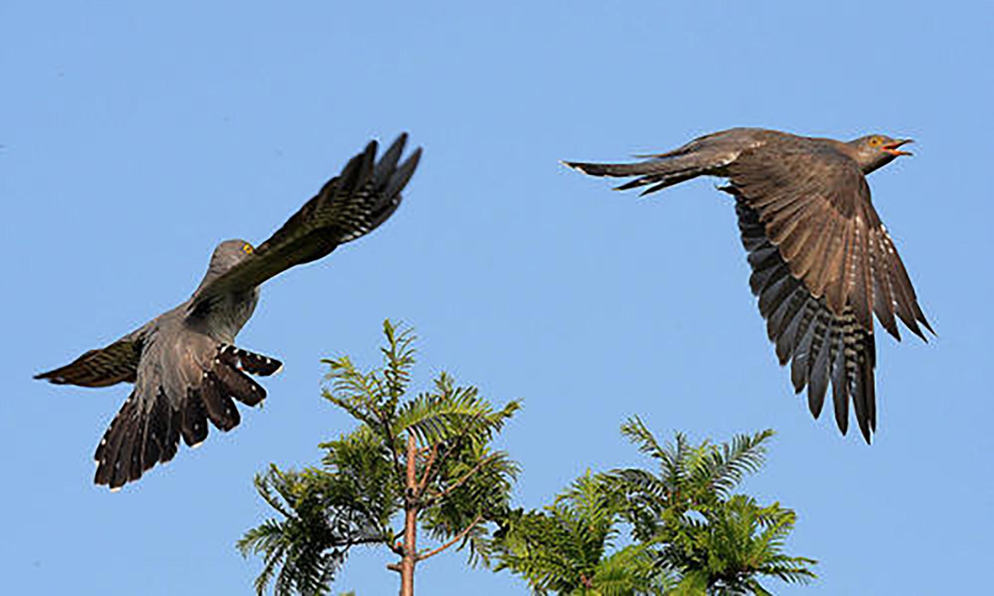 鸠蹈丛林频亮嗓,鸣莺相伴共翩跹。